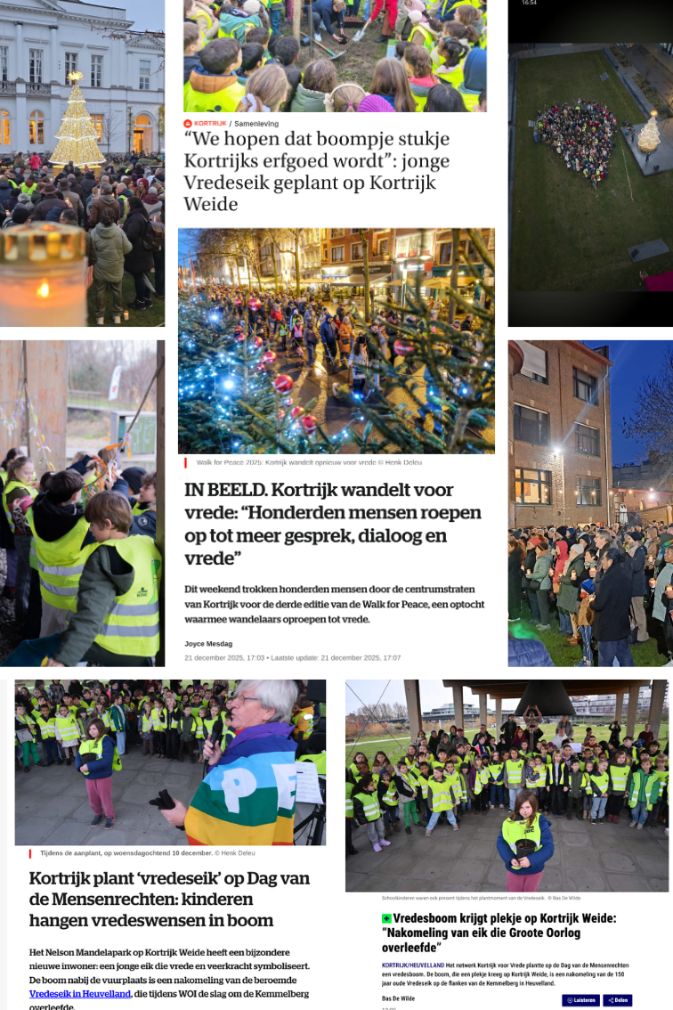 - Elk jaar organiseren we samen de ‘Walk for Peace’, ons grootste evenement in Kortrijk. In 2025 vond die plaats op zaterdag 20 december 2025.
